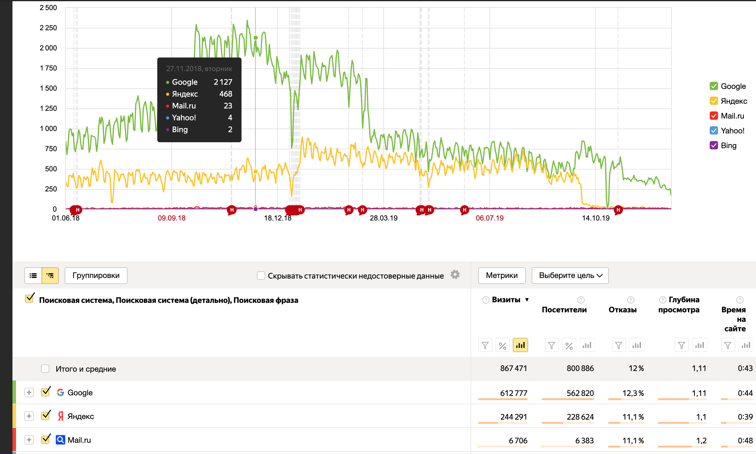 Дополнительная информация по трафику:Трафик весь из ПС смотрите метрику, скрины