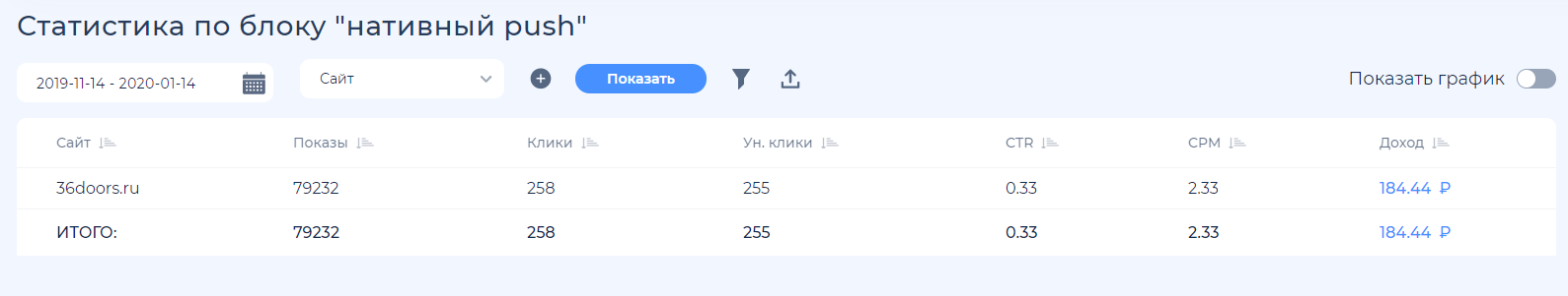 Продается сайт строительной тематики для монетизации под РСЯ или партнерские программы, связанные с тематикой строительства. Все материалы сайта копипаст из открытых источников сети интернет. В частности, материал парсился из поисковой выдачи Яндекса по xml запросам. Трафик сайта естественный, без накруток. В связи с тем, что сейчас не сезон для строительных работ, трафик спал. Возможно еще сказались последние веяния гугл, который ввел новый алгоритм ранжирования. Продаю сайт в связи с необходимостью закрыть кредитные обязательства. Монетизировал сайт ранее с помощью пуш рассылки и рекламы медицине тизера. После отказался от медицине тизера в пользу РСЯ, так как доходность сайта в РСЯ была выше. Сейчас на сайте стоит пуш-подписка, настроен нативный пуш и РСЯ. Нативный пуш был установлен с 25 декабря 2019 года, поэтому с среднемесячный доход я его не включал. Доход с 25.12.2019 по 04.01.2020 года составил по нативному пушу 70,86 копеек.