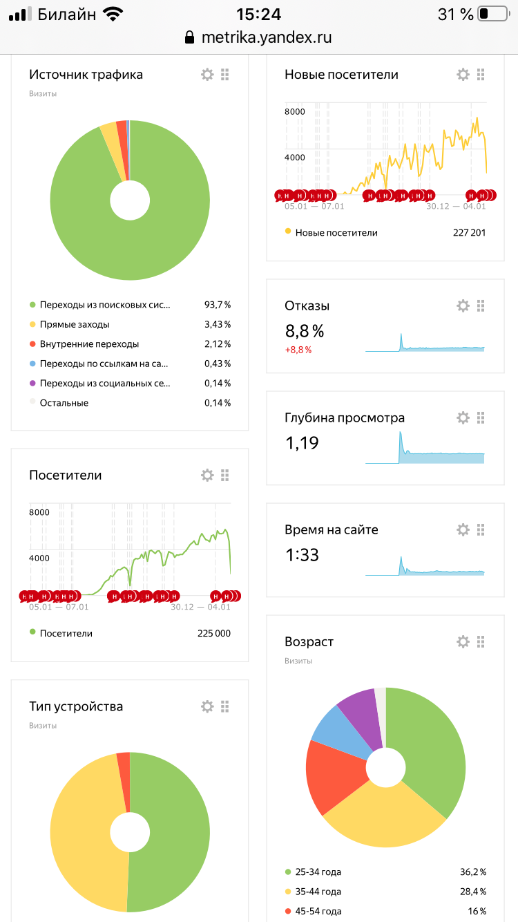 Сайт хорошо растёт с момента его запуска, быстро реагирует на опубликованные статьи.