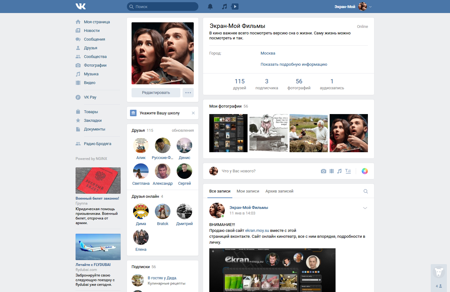 Вместе с сайтом продается:Вместе с сайтом продается страница в соц сети ВКОНТАКТЕ https://vk.com/ekran_moy_su