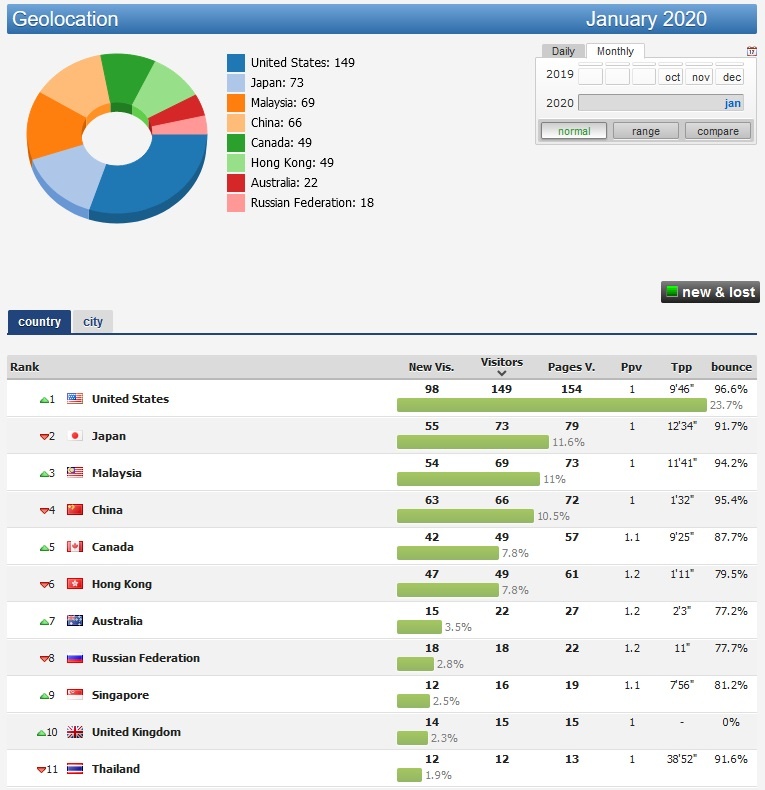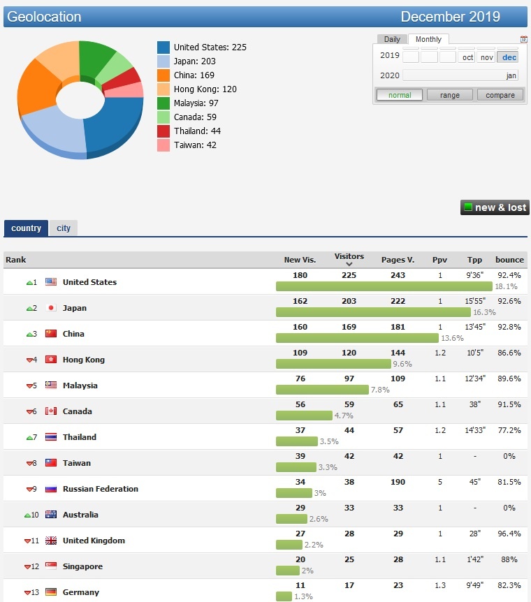 Не смотря на китайский язык, основная посещаемость из США (скрины геолокации за 2 месяца), на 2-м месте - Япония.