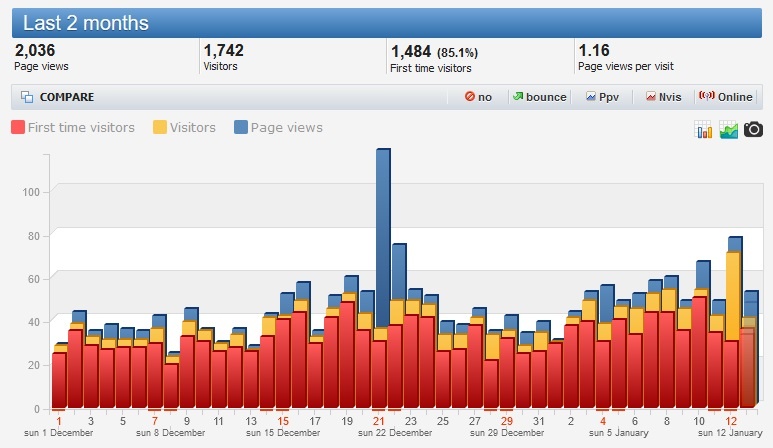 Добавил статистику Liveinternet. В сутки в среднем на сайт заходит порядка 50-60 пользователей.