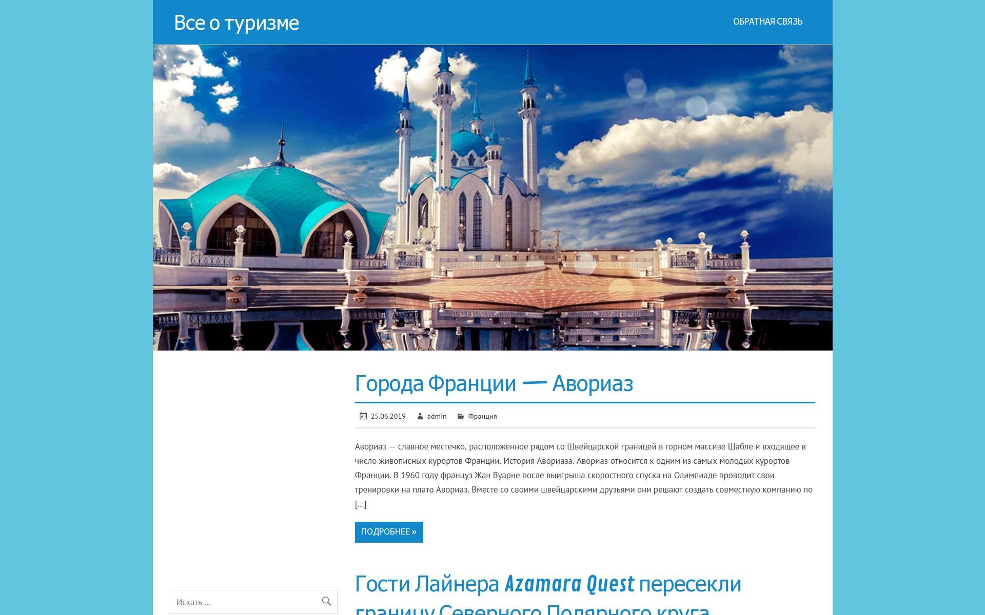 Сайт "Все о туризме" - сайт туризме, странах и городах. Находится на вордпресс, есть функция автонаполнения.