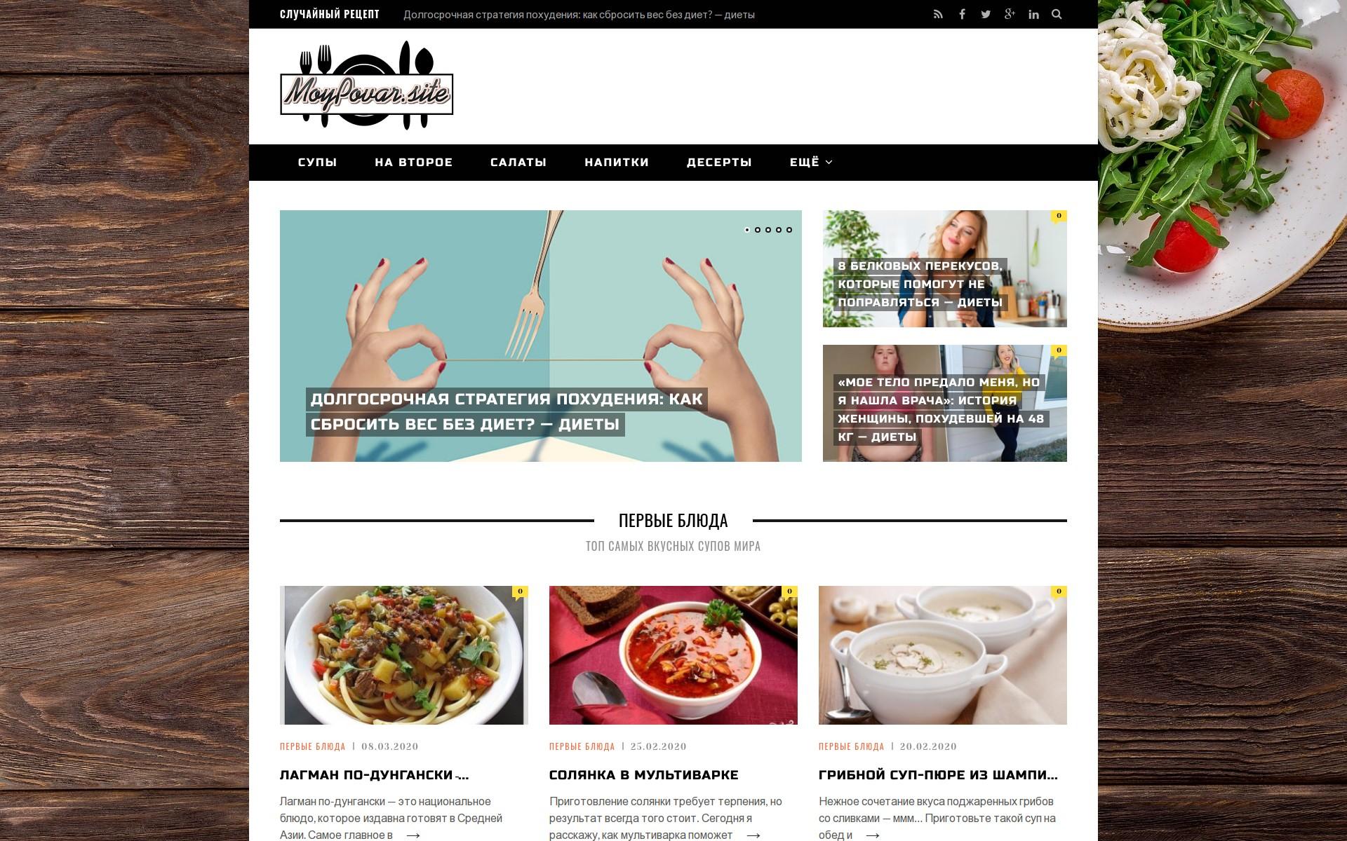 Красочный и функциональный сайт о различных диетах и рецептах, с автонаполнением.