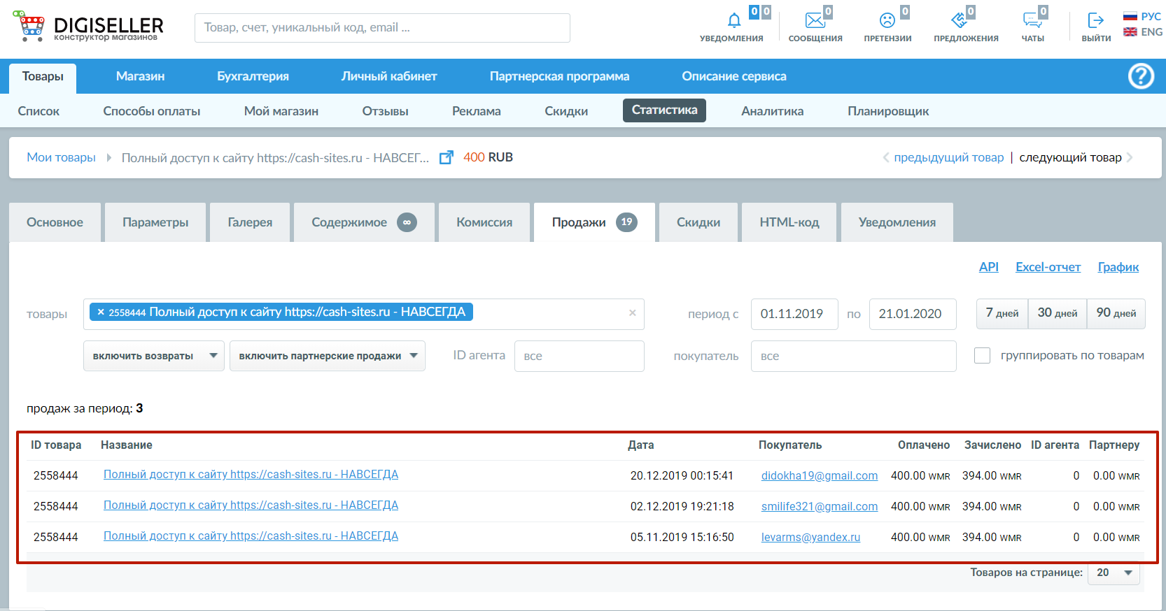Продажа товаров и услуг:600 ₽ / 100%