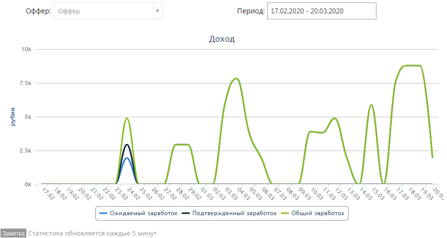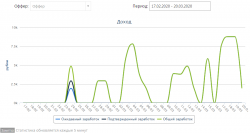 Доход за c 01.03 по 27.03 от гугла что то около 57.02$ (но только недавно навесил блоки от него). По РСЯ в день 65-80 руб. Но висит один блок, можно поиграться. Так же есть одобренных лидов на 28.03.2020 на 11 760 фото графика прицепил
