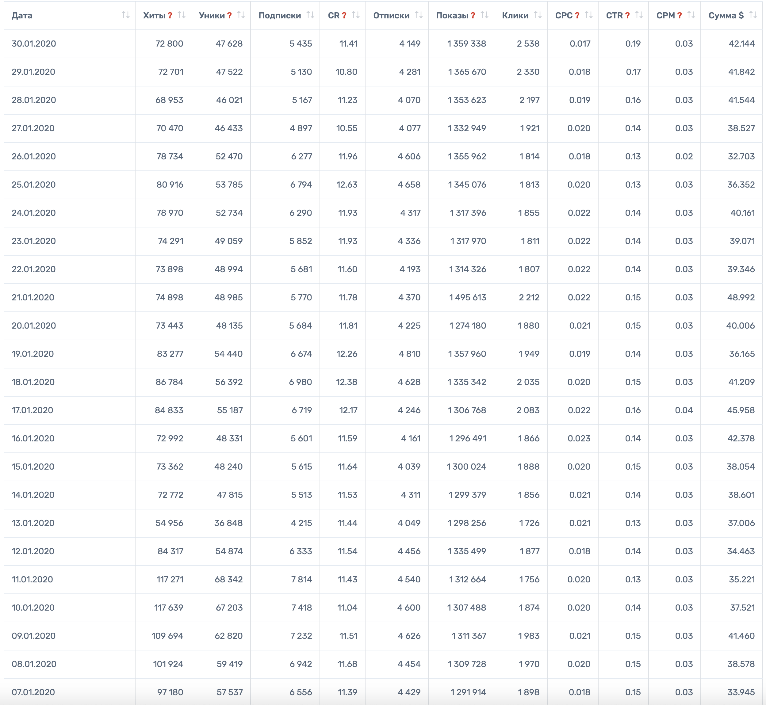 Источники трафика: