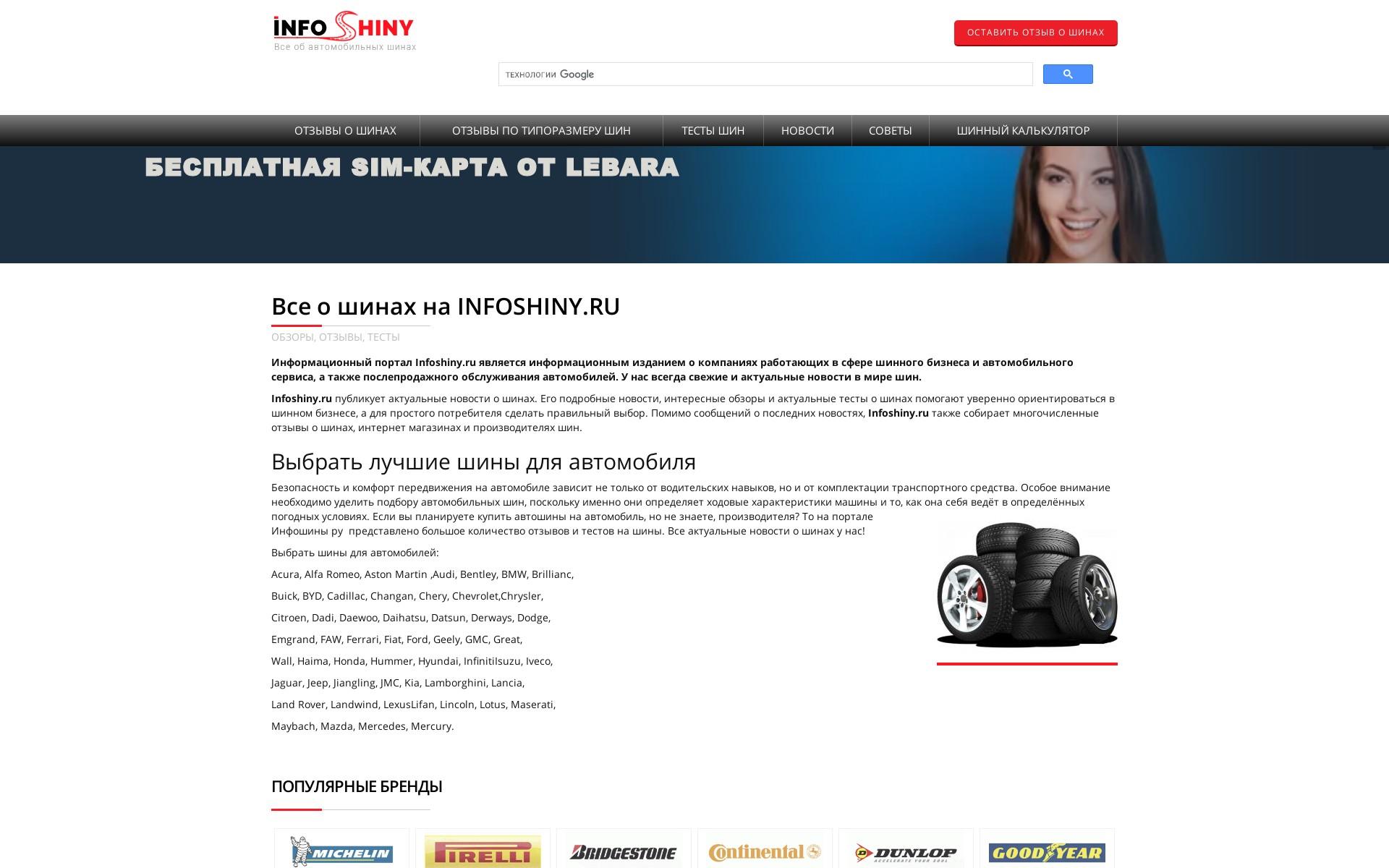 Сайт делался под автомобильную тематику для себя. На сайте более 500 уникальных статей и более 2000 отзывов на автомобильные шины. Один из посещаемых сайтов по шинам в России. В сезон будет более 10 000 в сутки. Все вопросы в личку.
