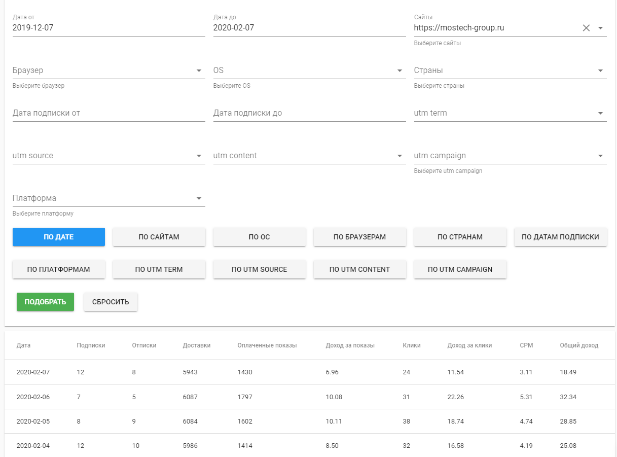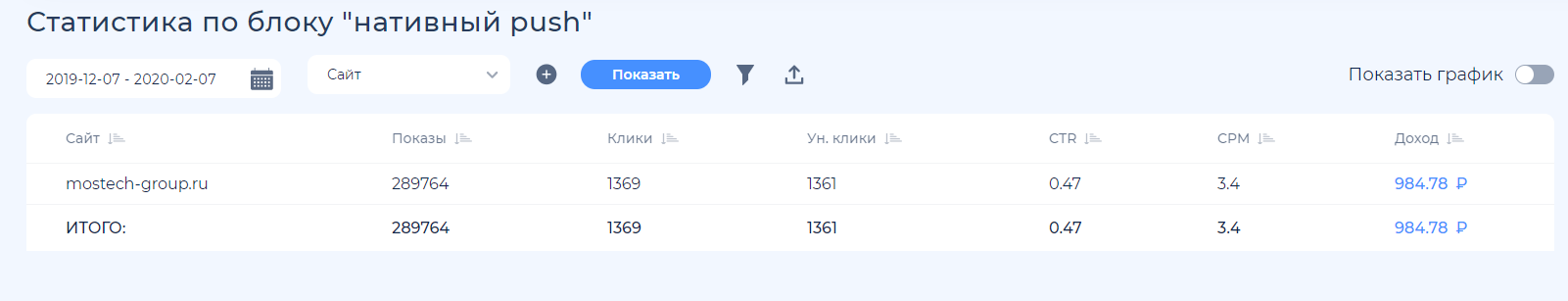 Доход у сайта идет с пушей, тизерной рекламы и с нативных пушей