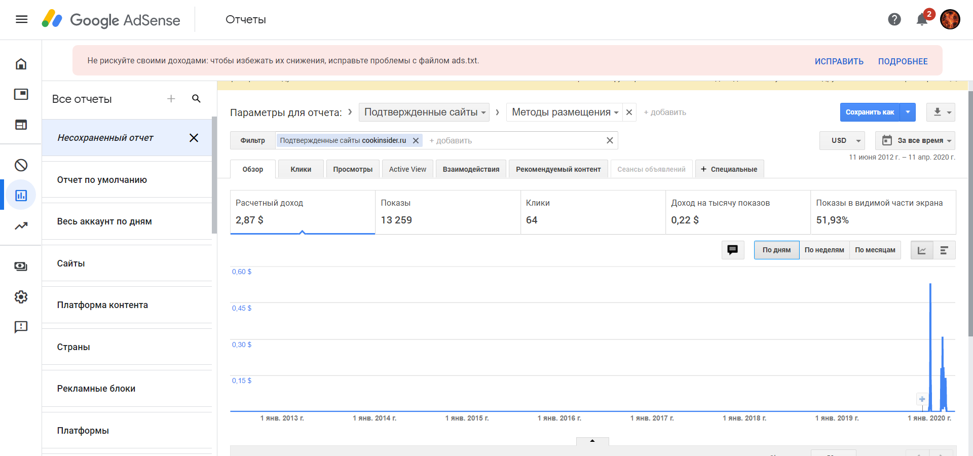 Добрый день , есть ли бан в Адсенс или РСЯ и можно скриншоты Адсенс и РСЯ за пол года и за год по месяцам, где видно ctr, доход за месяц, количество кликов.