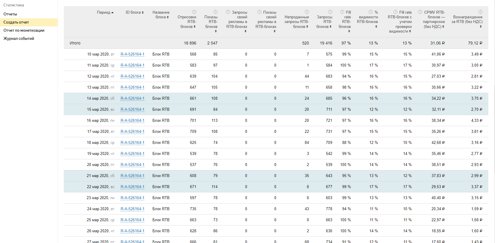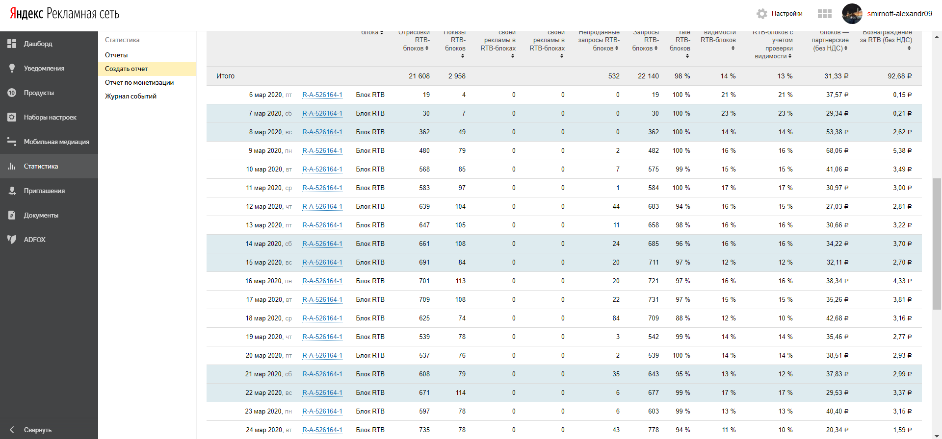 2) скрин адсенс и рся за месяц (по дням, где видно ctr, доход за день, количество кликов)