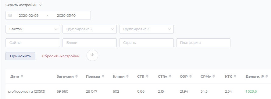 Google Adsense:1 029 ₽ / 38%