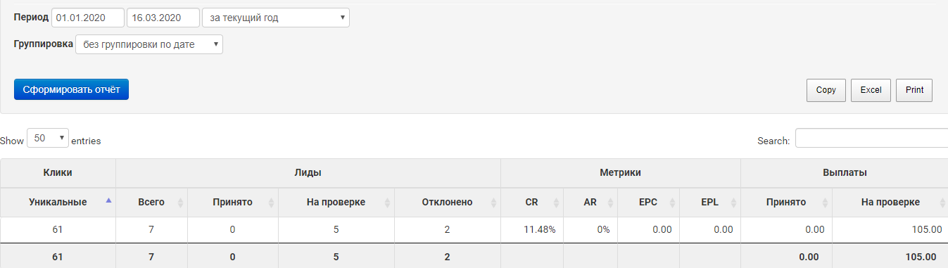 Пока подтвержденных лидов нет. Поэтому ставлю доход равный 0