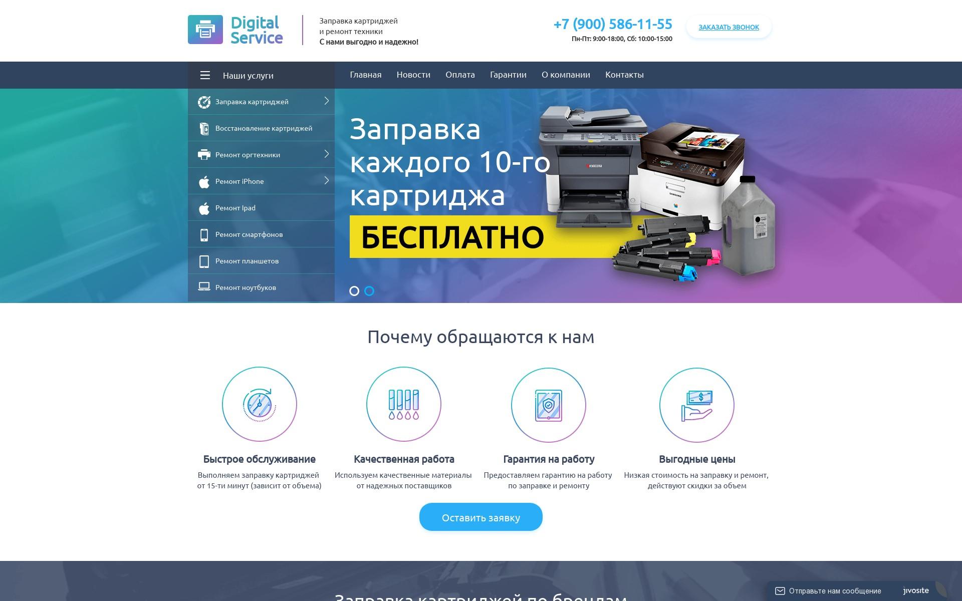Сайт отлично подойдет для любого сервисного центра по ремонту электроники и оргтехники.