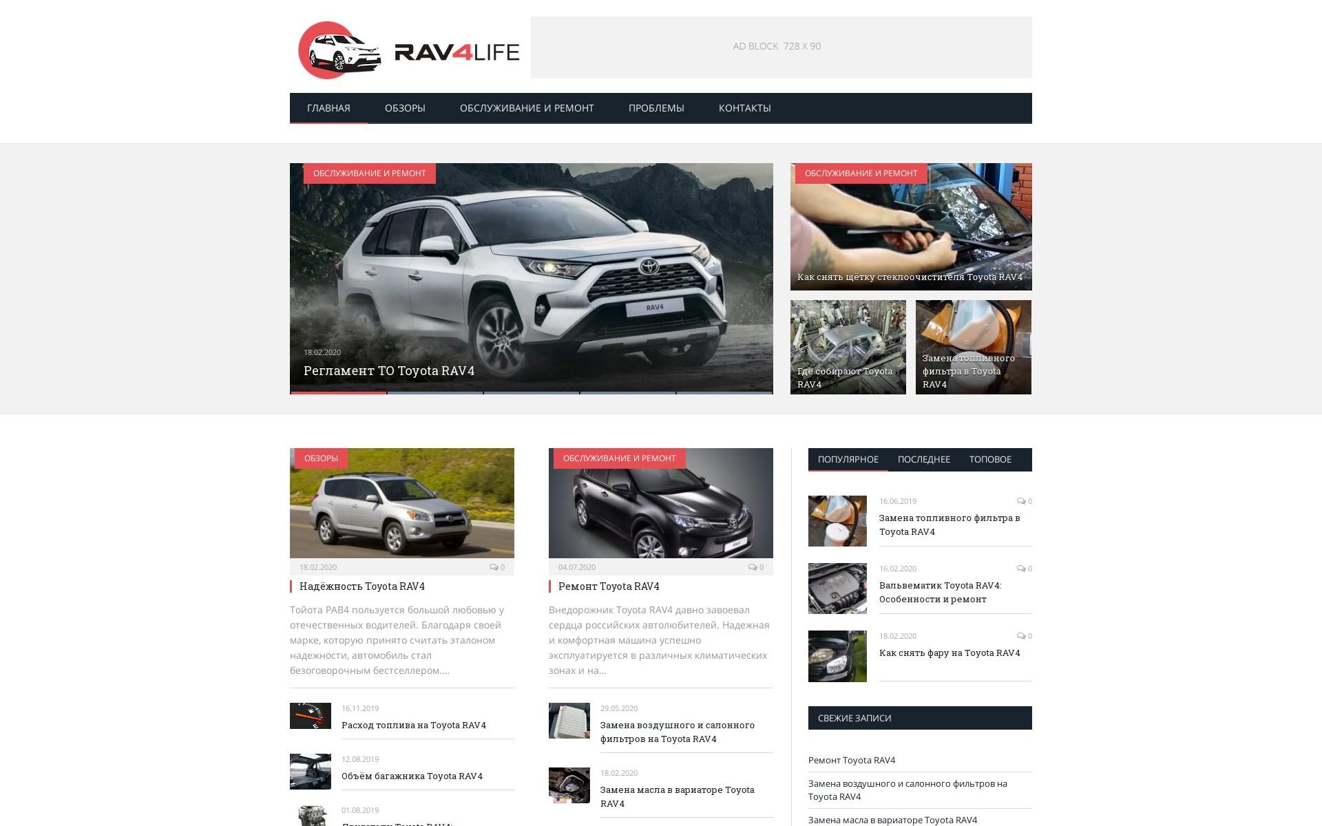 Информационный ресурс про автомобиль Toyota RAV4 всех поколений. Статьи про ремонт, обслуживание, различные инструкции, обзоры и прочее. Готовый сайт для начала работы. Домен с возрастом, без санкций, не дроп. Пиши статьи и будет трафик.
