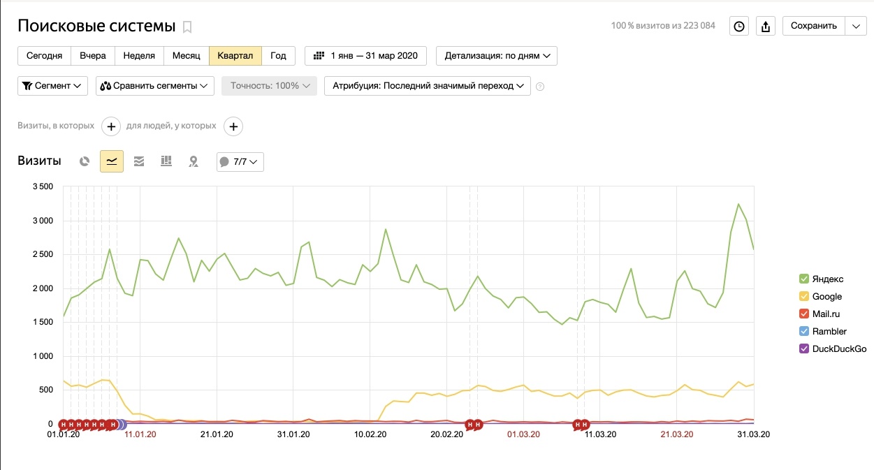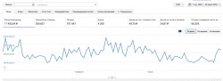 - Поведенческие факторы отличные. В среднем: отказы — 9,65%, глубина просмотра — 1,2, время на сайте — 1.08 минута, что говорит про лояльность аудитории. Распределен трафик равномерно, на все статьи, с небольшими ступенями от большего к меньшему, рывков резких в этом плане нет.