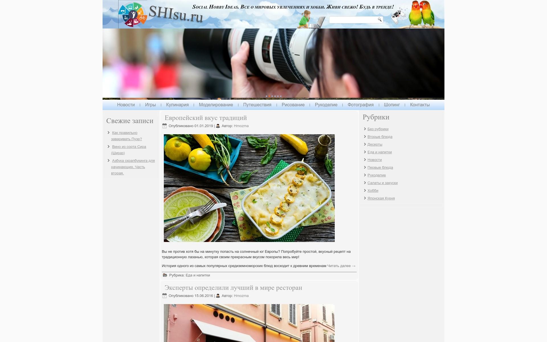 Успел хорошо развить только тему кулинарии. Но переделал сайт под ХОББИ, т.к. сейчас эта тема очень актуальна в связи с карантинными мероприятия в стране и мире. Поэтому тематика доходная для заработка.