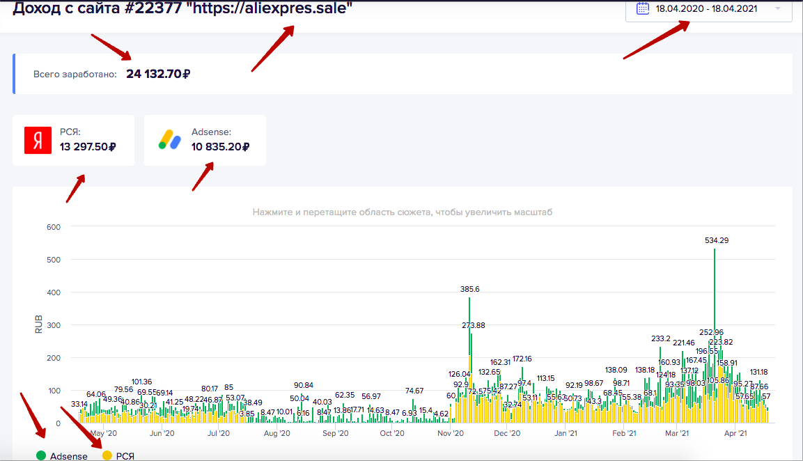 ВНИМАНИЕ: Доходы указаны только по сайту о Алиэкспресс, по остальным рекламы не добавляла еше. Пушпрофит за 12 мес: 2690руб (224/мес) CPA: скрины прикрепила http://joxi.ru/82QGw76U904lQr Другое: Пушпрофит+ГГЛ (агрессивно не продавала, размещено всего несколько ссылок, максимально схожих по тематике, размешала ссылки дорого, опустите немного цену и заявки попадают) Доход немного снизился из-за коронавируса. Восстановится сразу после окончания пандемии и пойдет в рост. По РСЯ и Adsense Telderi подгрузил все данные, они верны. Все скриншоты прикрепила, нужно что-то дополнительно - без проблем предоставлю, пишите. Добавлю пару слов о партнерке ePN.bz. Можете зайти в любую статью на сайте и увидеть вверху небольшой баннерок "Вперед к покупкам на AliExpress", такой же баннер и внизу под статьей. Я думаю, стоит уделить больше времени и сделать еще несколько баннеров на сайте, а может и вовсе заменить все баннеры контекстной рекламы на партнерку, т.к. она дает очень неплохой доход.