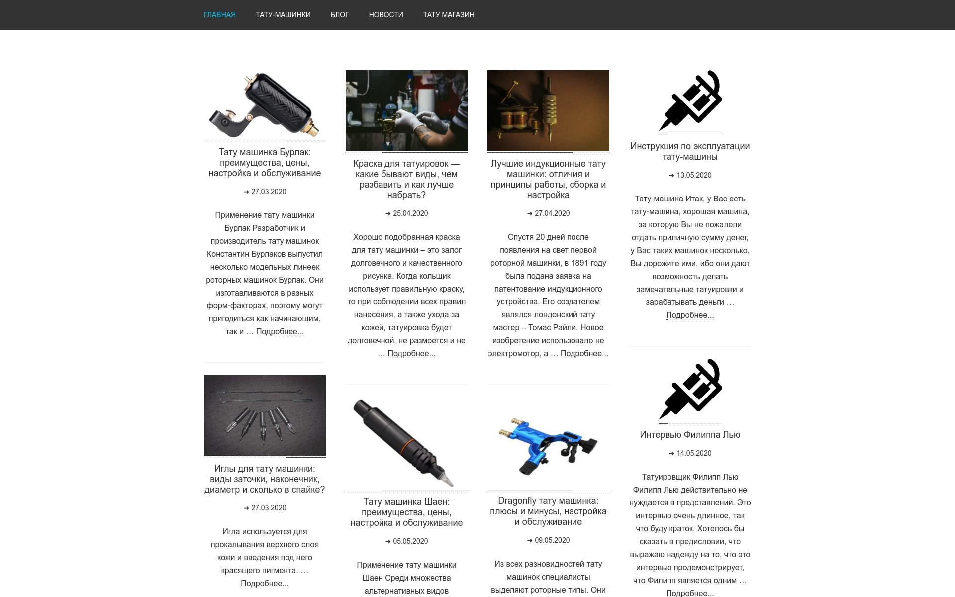 Сайт о татуировках, тату-машинках и дополнительном оборудовании.
