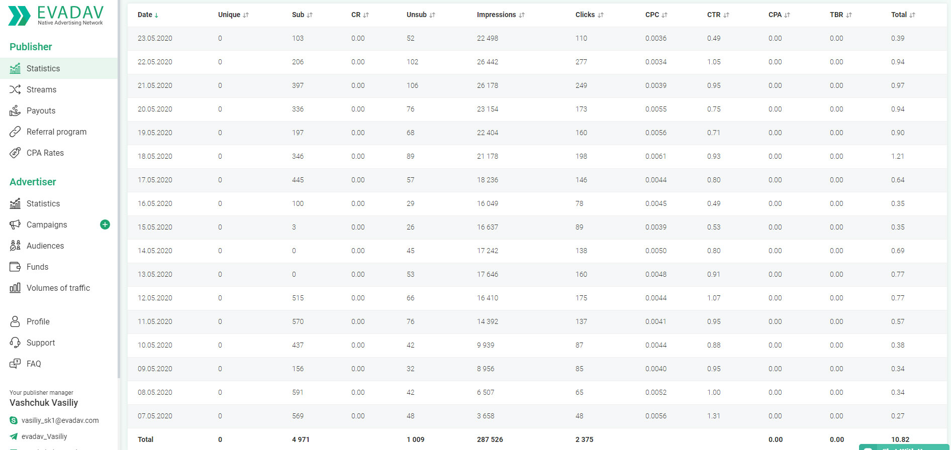 Сейчас сайт вышел на огромный трафик от Яндекс.Дзен. Доходы с Google Adsense, РСЯ, пуш подписки EVADAV.