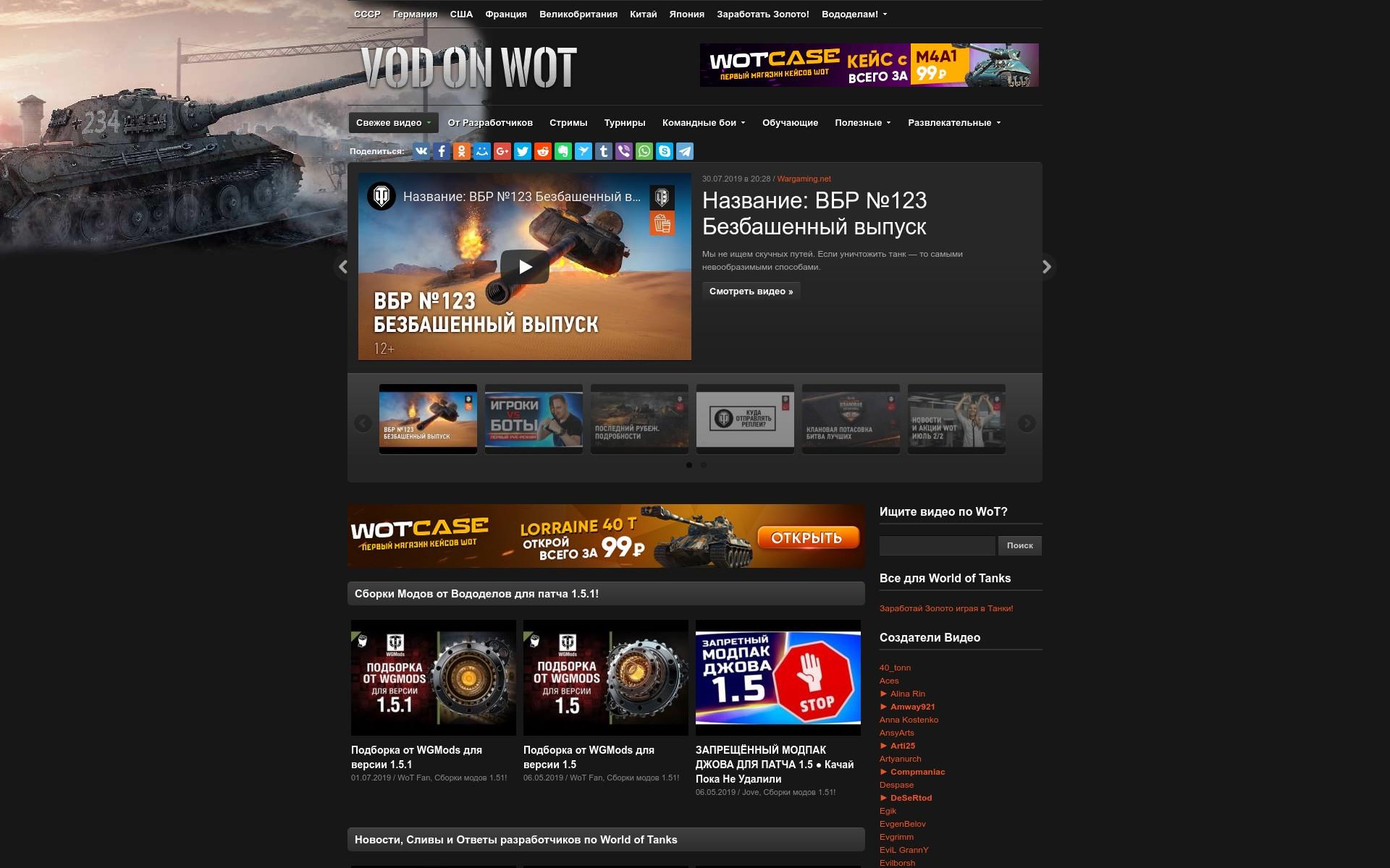Фан-сайт по World of Tanks, ранее числился в списке официальных фан ресурсов игры со всеми вытекающими привилегиями. Создавался на энтузиазме и активно велся до 18-го, публикация контента закончилась в середине 19-го.