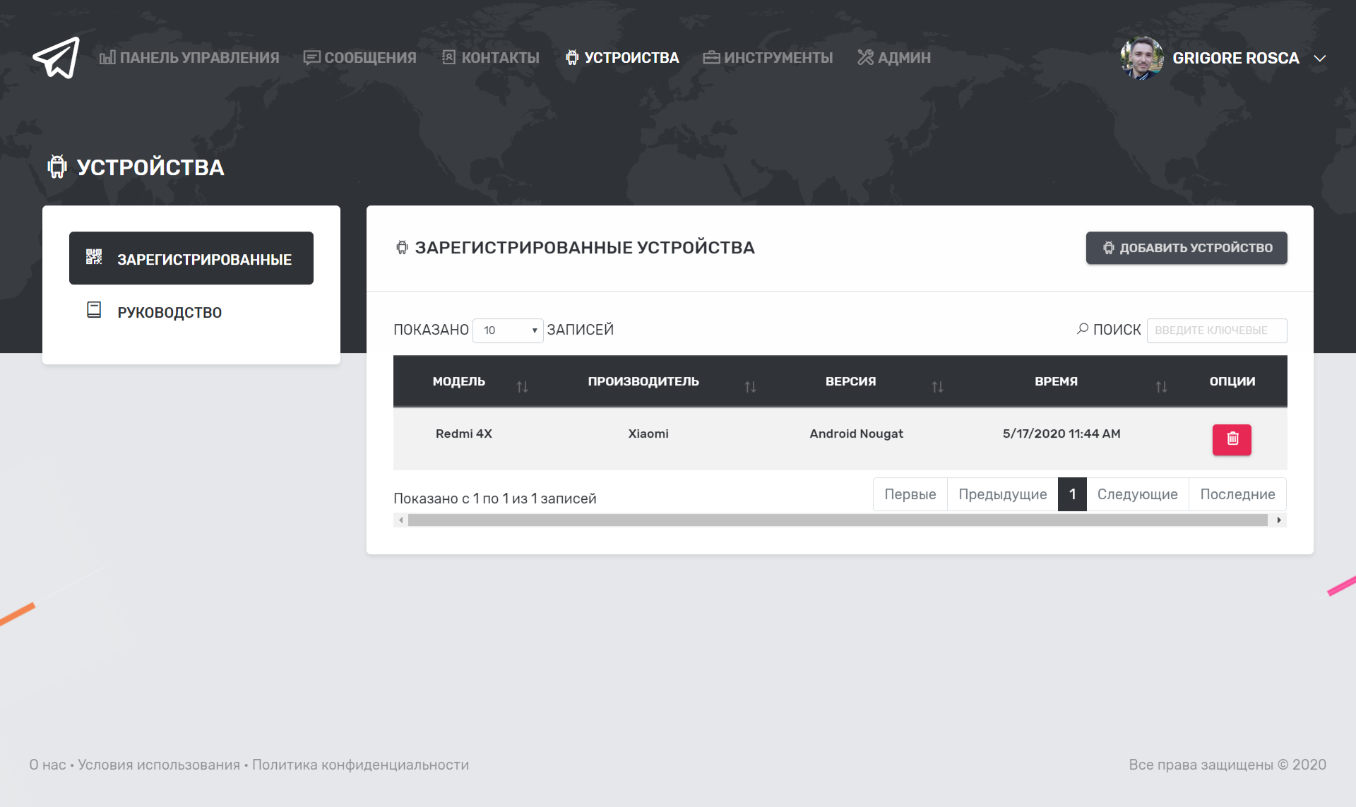 2. Устанавливаете на свои телефон(ы) с андроидом приложение SMSPush, скачать его можно в панель управления пользователя в раздел: Устройства.