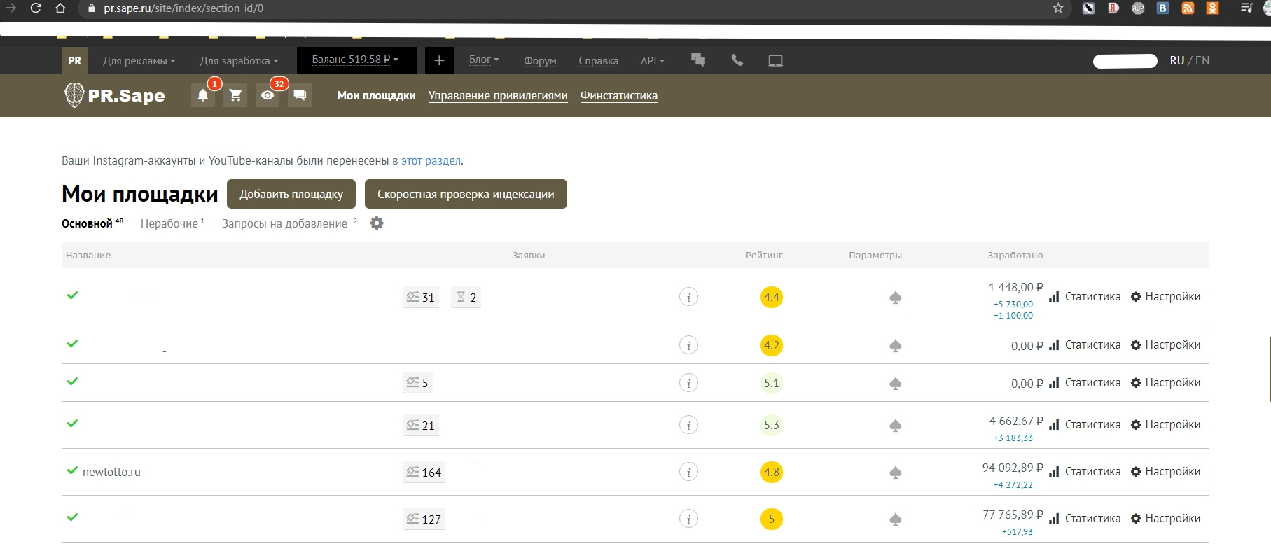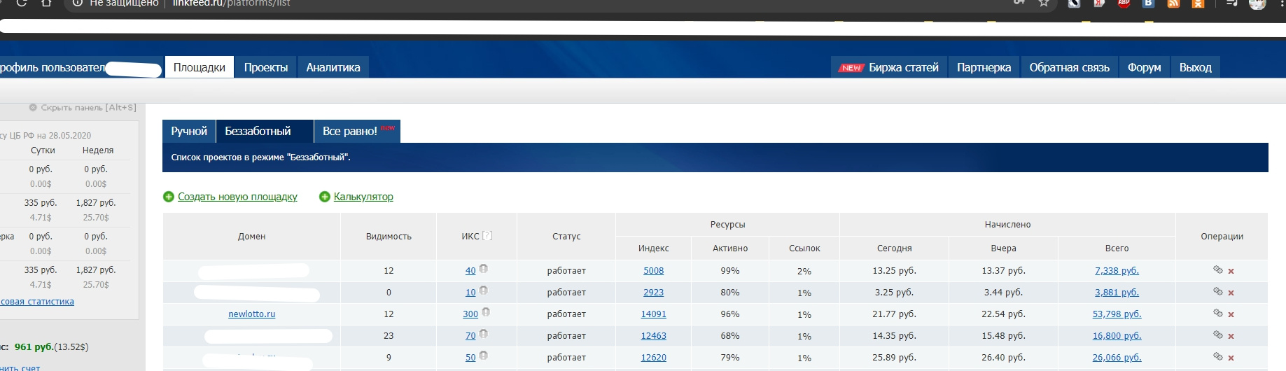 Сайт работает на биржах которые приносят стабильный доход, так же есть прямые заказчики на публикацию статей, постов, ссылок, баннеров на сайте. Данные люди связываются на прямую с администрацией сайта.. Биржи - Блогун, RotaPost.ru, Sape, collaborator.pro, miralinks.ru, MainLink, linkslot.ru, ingots.ru, webartex.ru, seoware.ua, gogetlinks.net, prnews.io. и другие биржи и тизерные сети... Из чего складывается доход: Google Adsense - видно на графике miralinks.ru - видно на графике gogetlinks - видно на графике RTB.Sape - видно на графике Другие - Биржи - смотрите ( Прикрепленные файлы )