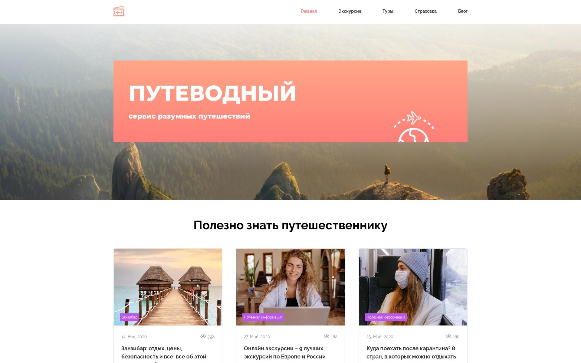 Сайт о туризме, заточенный под доход с партнерских программ и продажи прямой рекламы. Дизайн сайта уникальный.