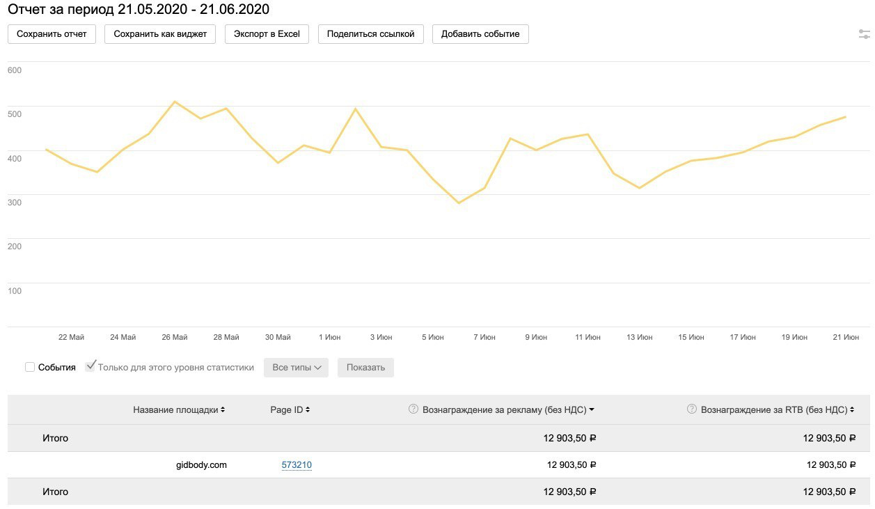 LuckyAds (кликабельно) - 235,24 р (повесил 6 дней назад, он будет дополнительно давать около 1000р/мес)
