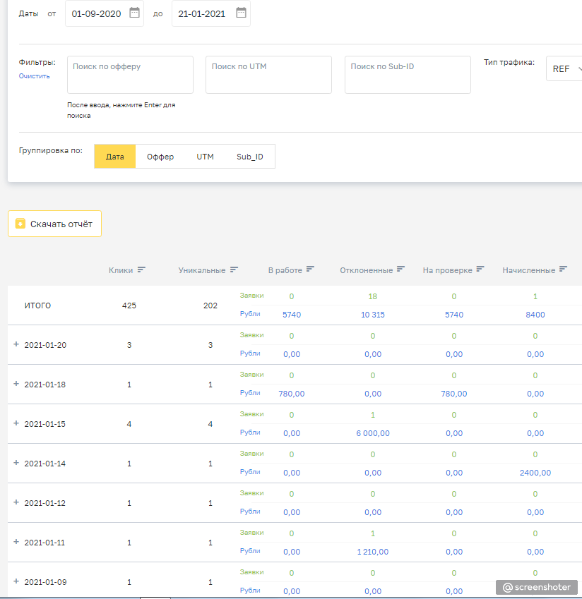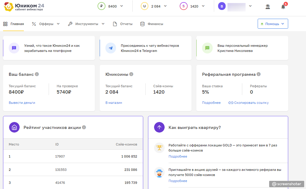 CPA (партнерские программы):8 400 ₽ / 100%