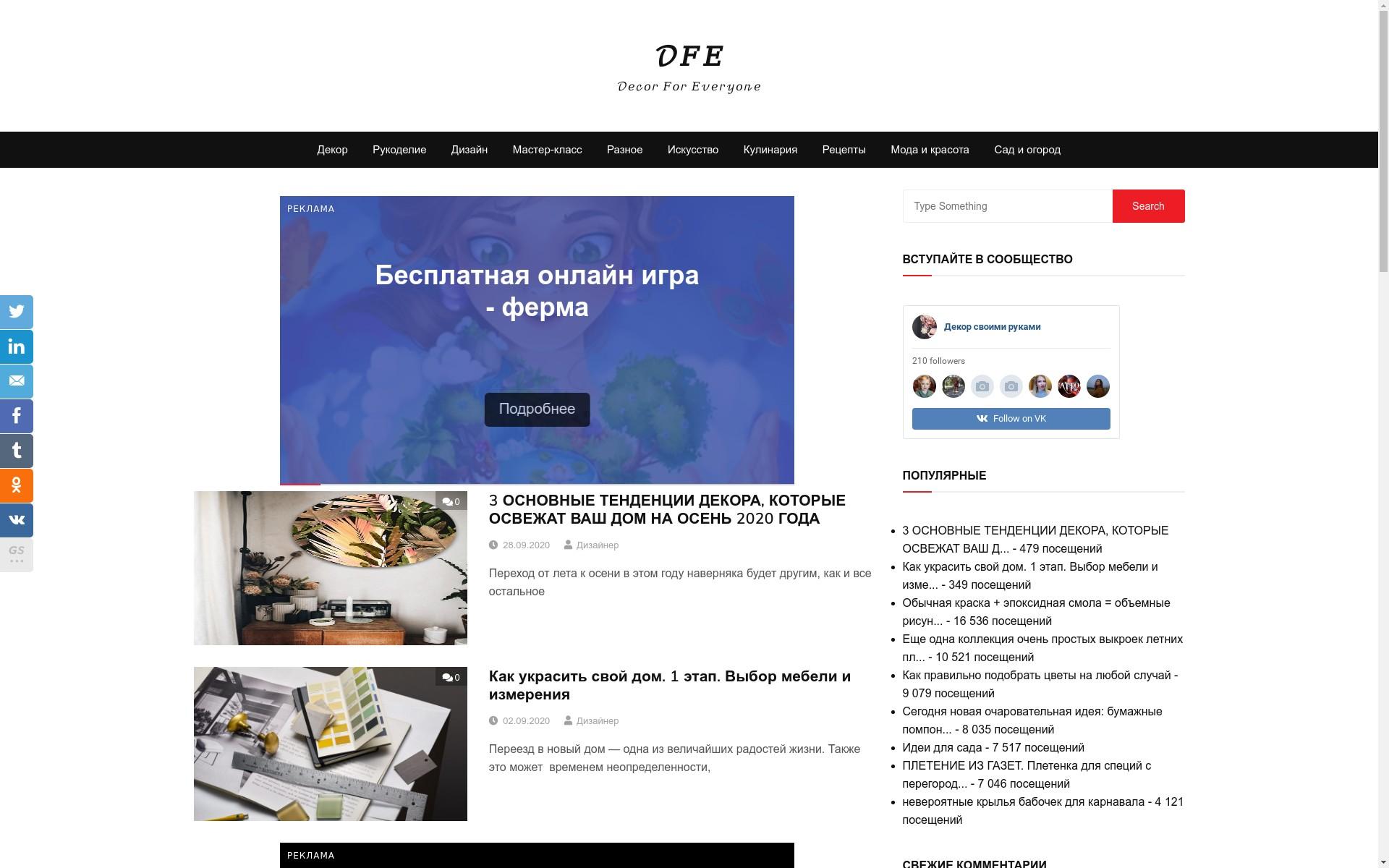 Сайт о строительстве и ремонте "Декор своими руками". Много иллюстрированных статей с оригинальными рецептами блюд, по теме "Кулинария", рукоделие своими руками с описанием и фотографиями. Дизайн интерьера с огромным количеством полезного материала с красивыми фото.