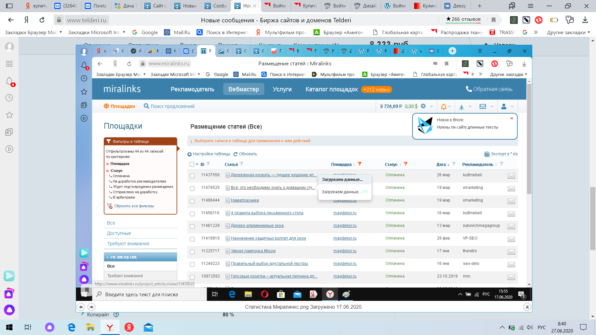 Дополнительная информация:Тексты с бирж контента доделываются и обрабатываются под заданные темы. Уникальность статей в подавляющем большинстве случаев 100 %. Количество статей на сайте более 25000 (20000 опубликовано, 5000 материала в черновиках)