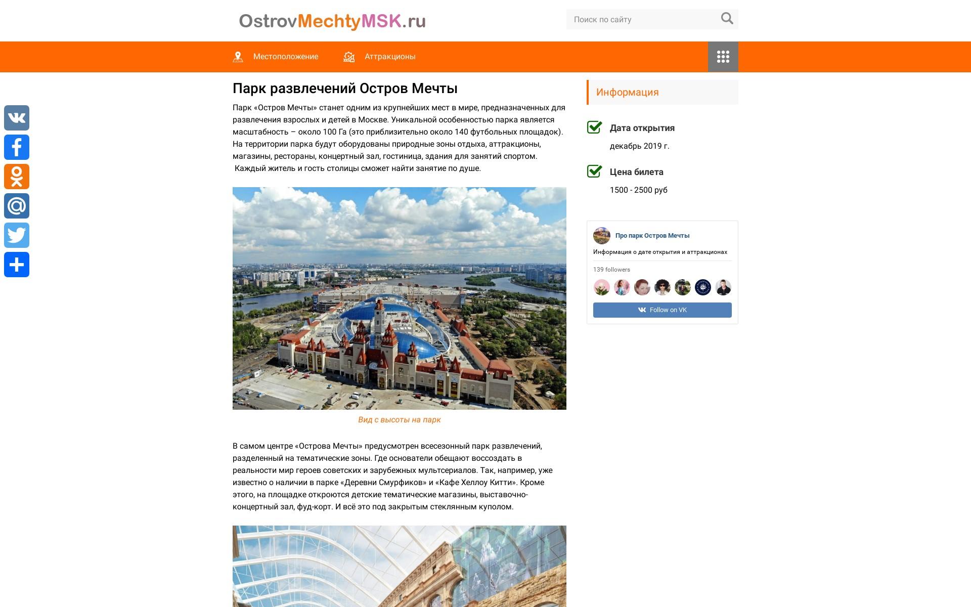 Сайт про недавно открывшийся парк развлечений в Москве.