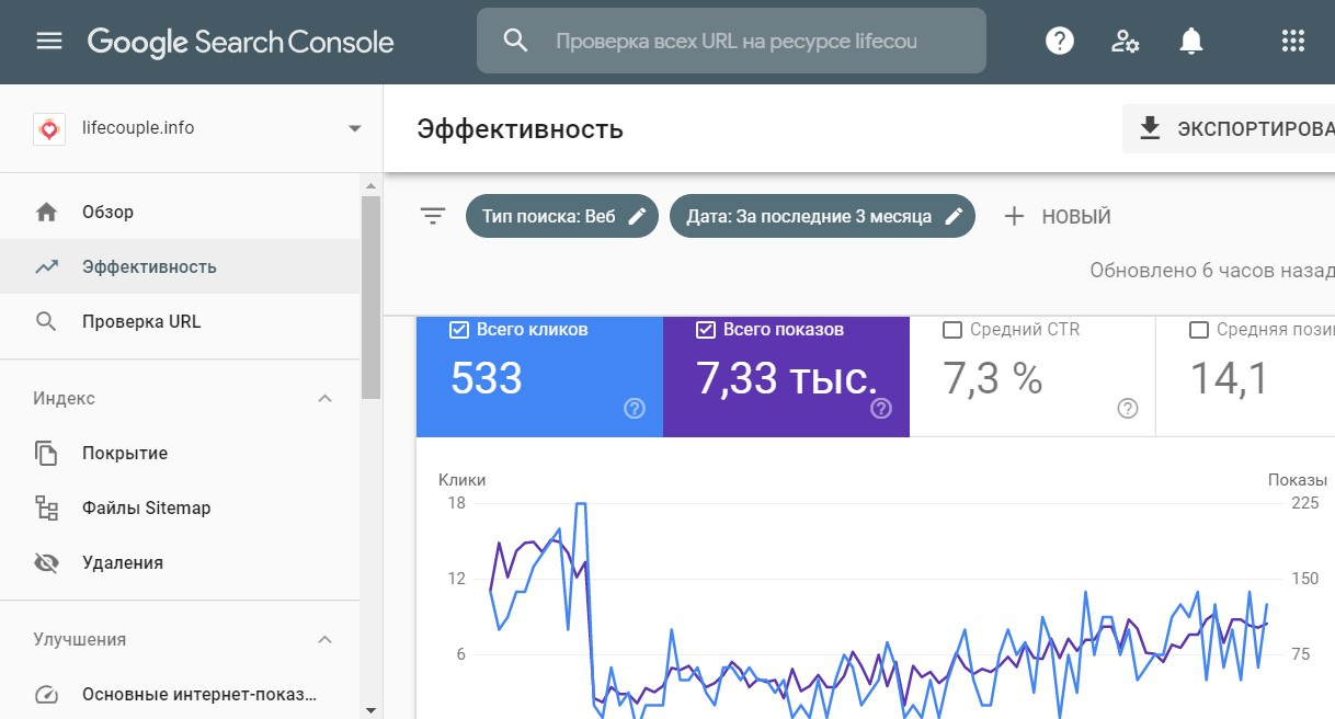 ✔ сайт хорошо индексируется гуглом, все статьи быстро попадают в индекс и занимают низкочастотные запросы