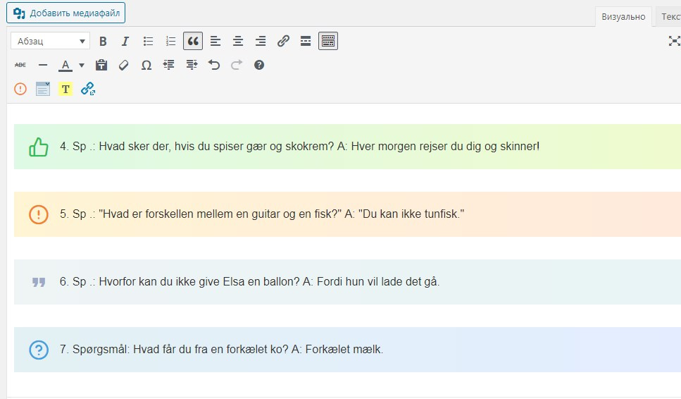 ✔ последний скриншот - в редакторе вордпресс внедрены блоки внимание для большего вовлечение читателей.