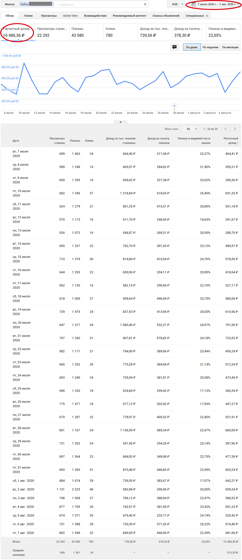 Доход 15000 рублей в месяц или 500 рублей в день. Если в долларах, то 210 долларов в месяц или 7 долларов в день. Скриншоты доходов и статистики прикреплены. Скриншоты и графики обновляются почти каждый день. Трафик и доход немного выросли за последнюю неделю, на 16%. За август доход может составить 17500 рублей. Это 7 месяцев окупаемости.