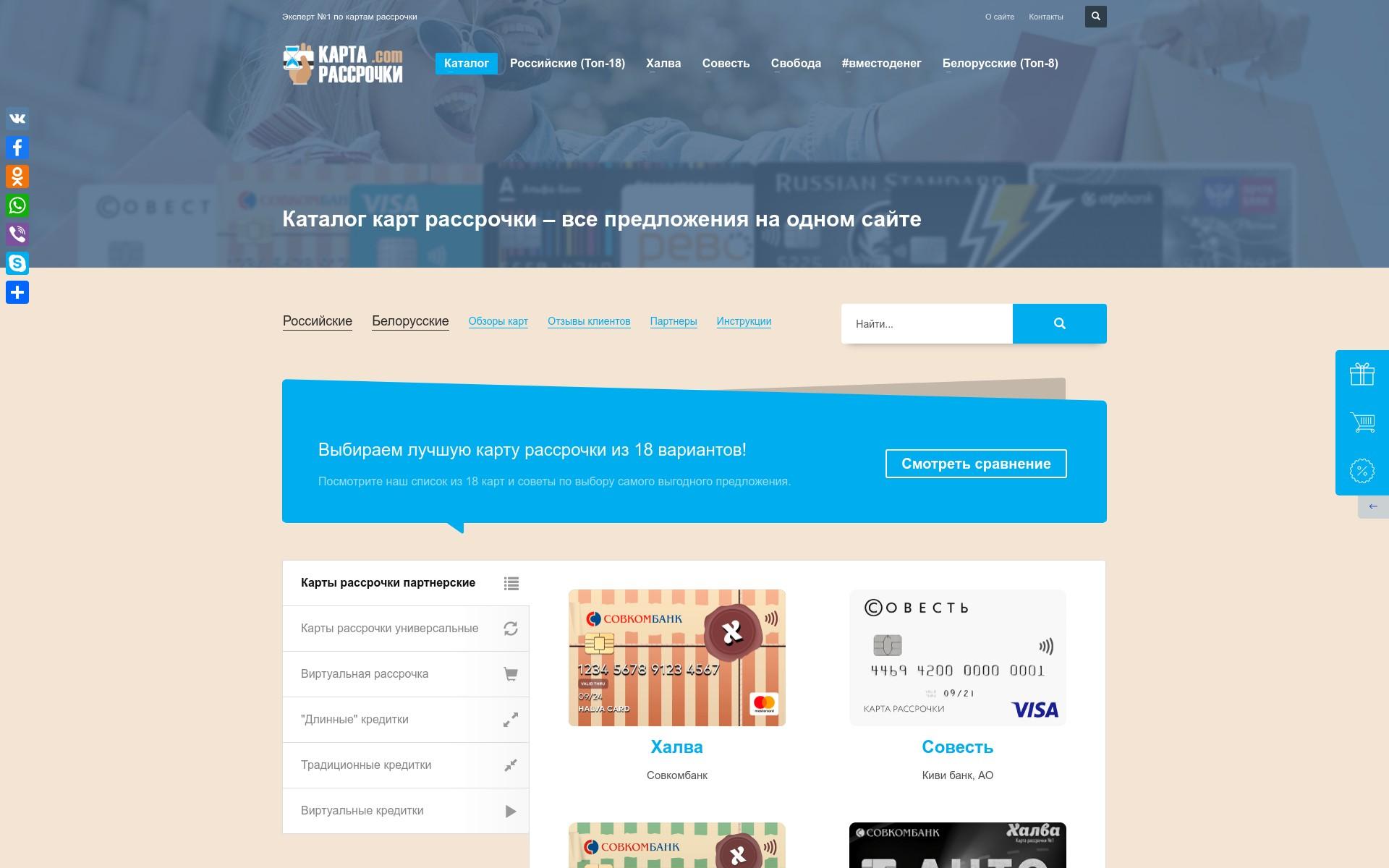 Добротный сайт о картах рассрочки, выполненный в виде полноценных красиво оформленных страниц, не статей.