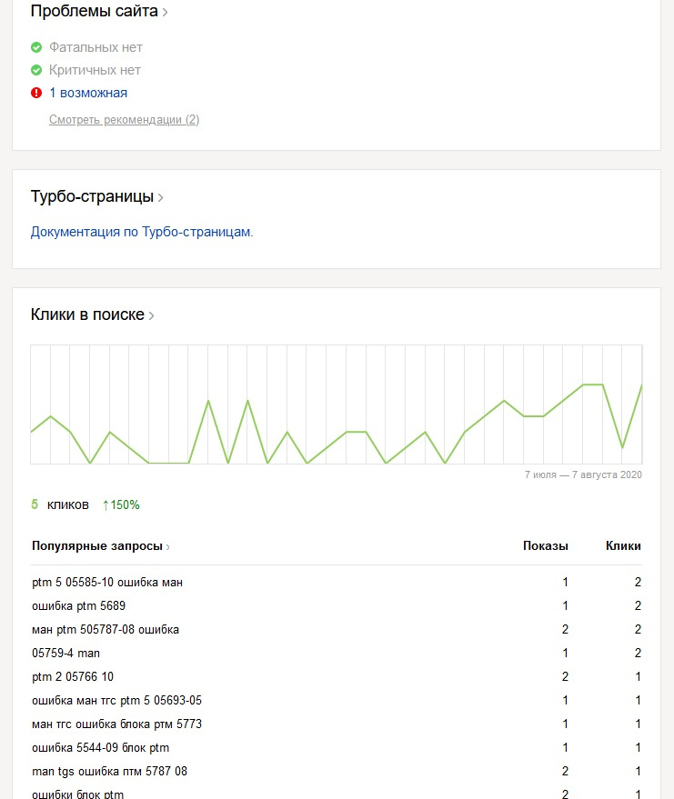 Сайт автотематики о кодах ошибок грузовых автомобилей. Трафик постепенно растет, преимущественно из Гугла, но из Яндекса тоже потихоньку растет.