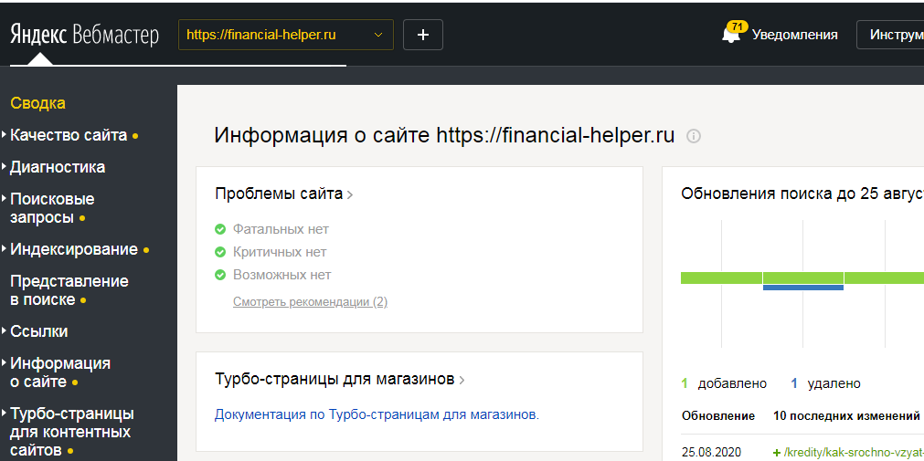 Никаких претензий со стороны поисковых систем нет. По Яндекс Вебмастеру все идеально – проблем на сайте нет (скриншот прилагаю).