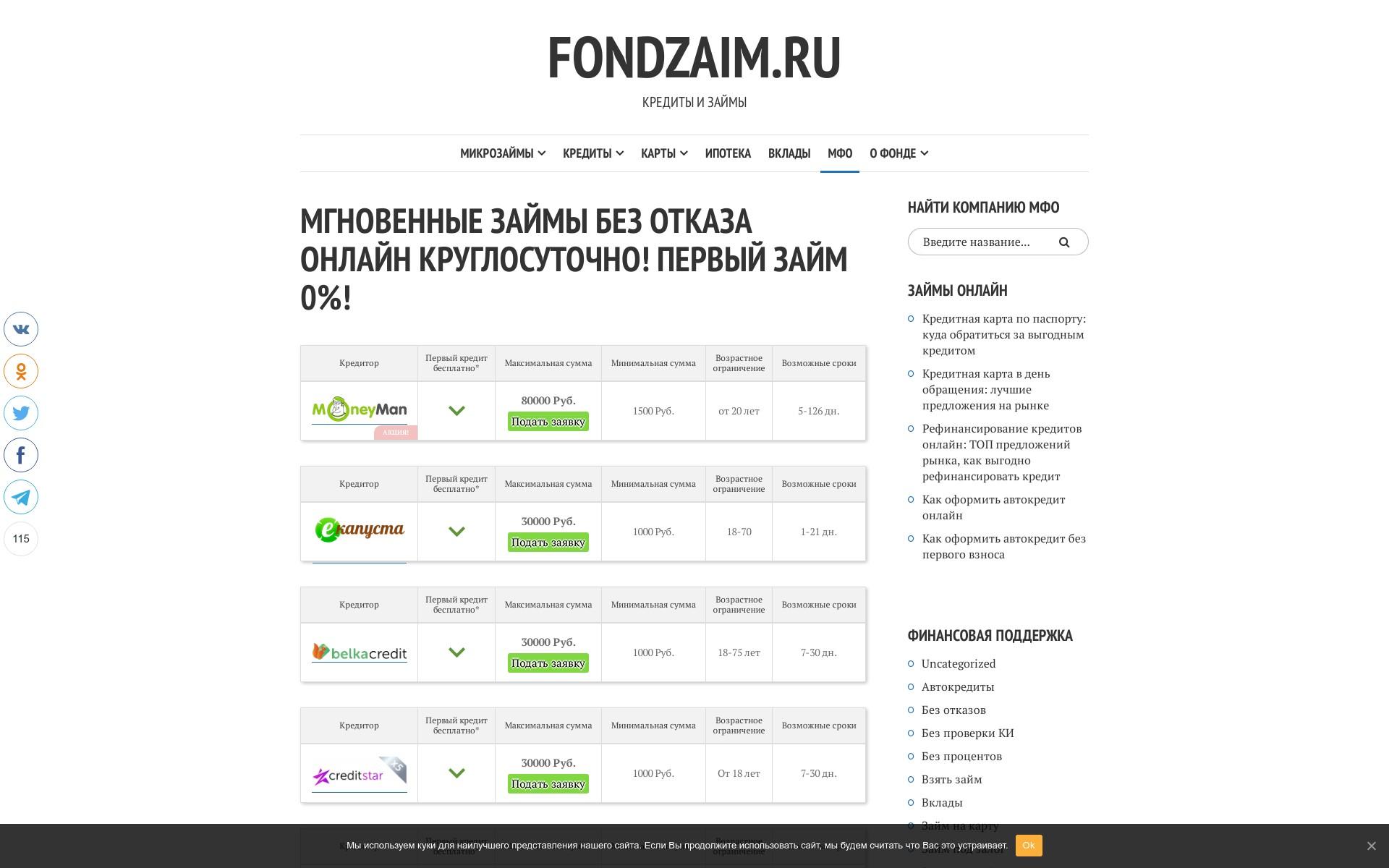 Микрокредиты, займы, МФО, ипотека, кредитные карты