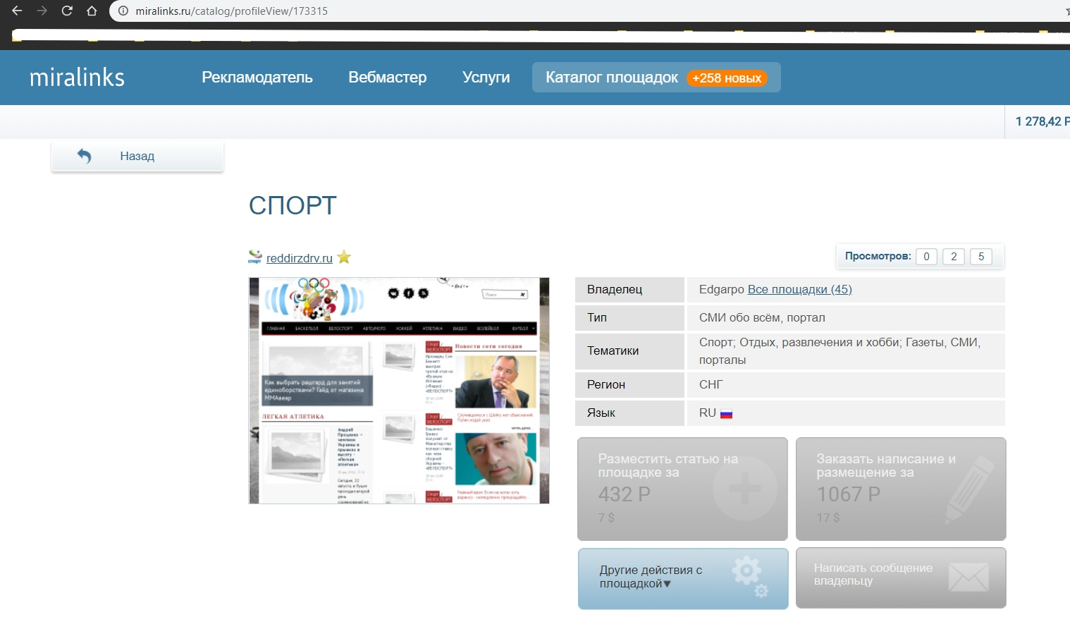 Прямые продажи ссылок:2 500 ₽ / 29%