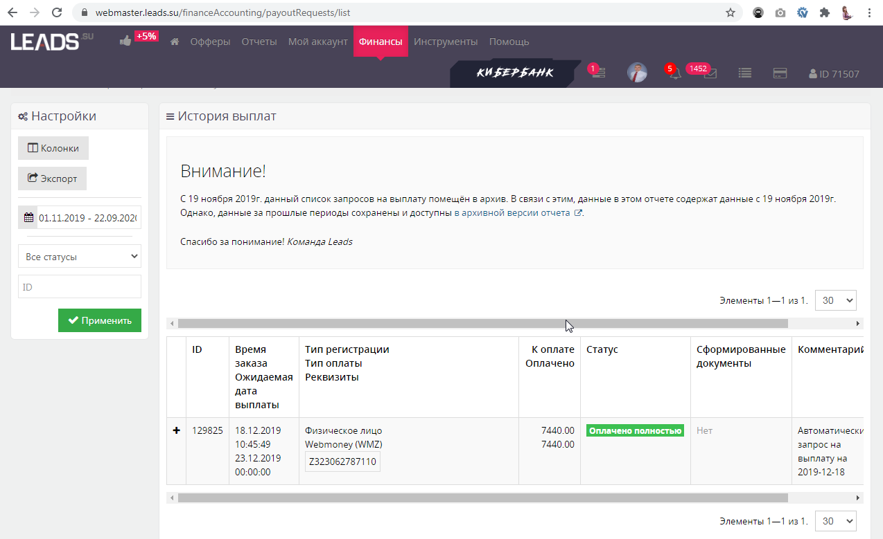 Принципиально не использовала МФО, были выплаты в Лидгид, регулярно капает с Лидии, иногда - Лидс.су (примерно 52 500 рублей за последний год с партнерок)