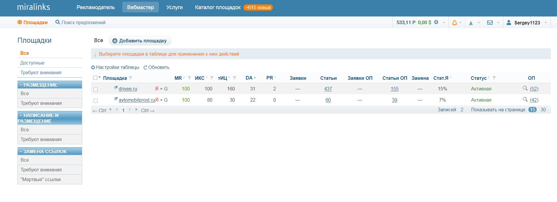 В конце года я снизил стоимость размещения до значений "средние по системе", и заявки стали поступать, а это значит, что если сайт продвигать: провести SEO-аудит, повысить ИКС, закупить ссылки на страницы ТОП 50 выдачи Яндекс, крауд-ссылки, ссылки на главную, посты в соцсетях и пр. он будет приносить хороший доход.