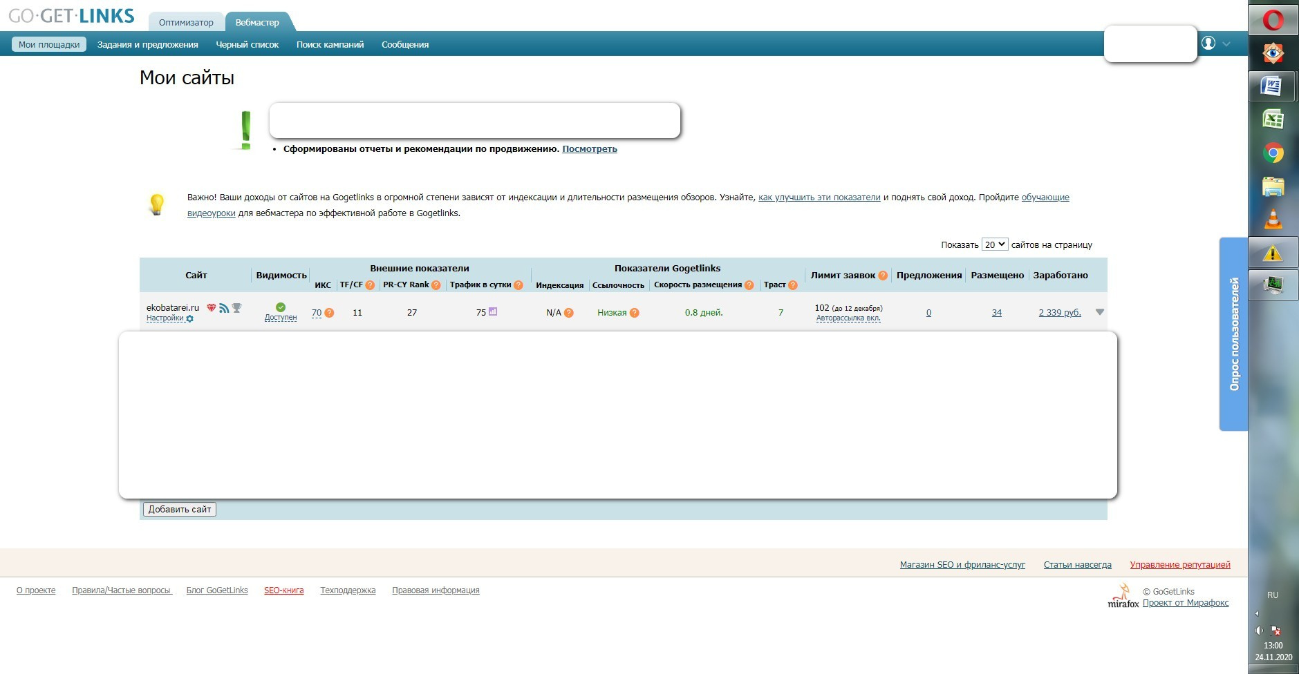 Сайт зарабатывает на РСЯ, Adsense, GGL, Miralinks