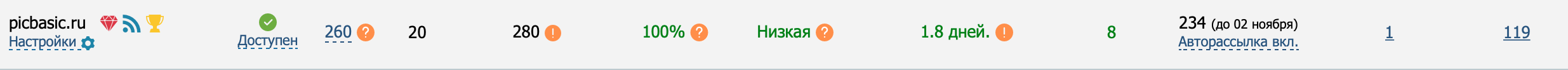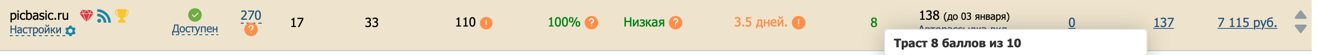 ИКС 260 (стабильно растет), TF/CF 20, в ГГЛ траст 8. Обращаю Ваше внимание, что данный сайт зарегистрирован в ГГЛ в очень редкой и профитной тематике: Производство – Электроника и электротехника (можете посмотреть, сколько площадок есть в данном разделе). Вот что сам ГГЛ пишет об этом у себя в блоге http://joxi.ru/v29kX5VtzaLezr