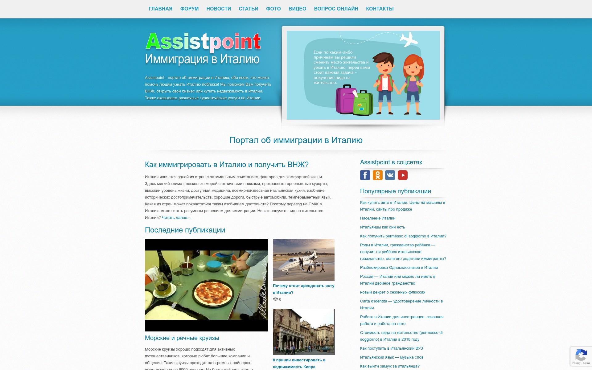 Портал об иммиграции в Италию. О туризме, как получить ВНЖ, открыть свой бизнес или купить недвижимость в Италии. Дизайн сайта адаптивный (Wordpress) под все современные устройства. Сайт простой и приятный глазу.