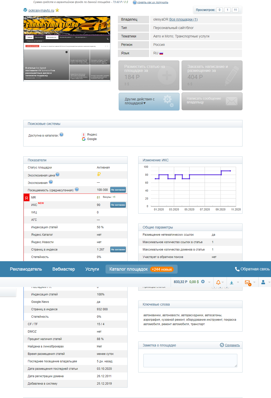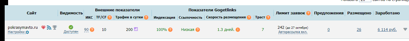 Несколько просели показатели TF\CF т.к был траст 8, сейчас 7, пара дропов изменит ситуацию. Мне сайтом заниматься совершенно некогда, поэтому и показатели просели и сайт продаю.