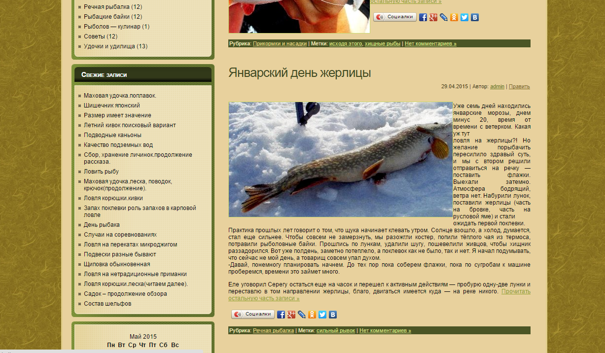 Тематика сайта - Всё про Рыбалку. Советы,новости,рыбацкие байки.