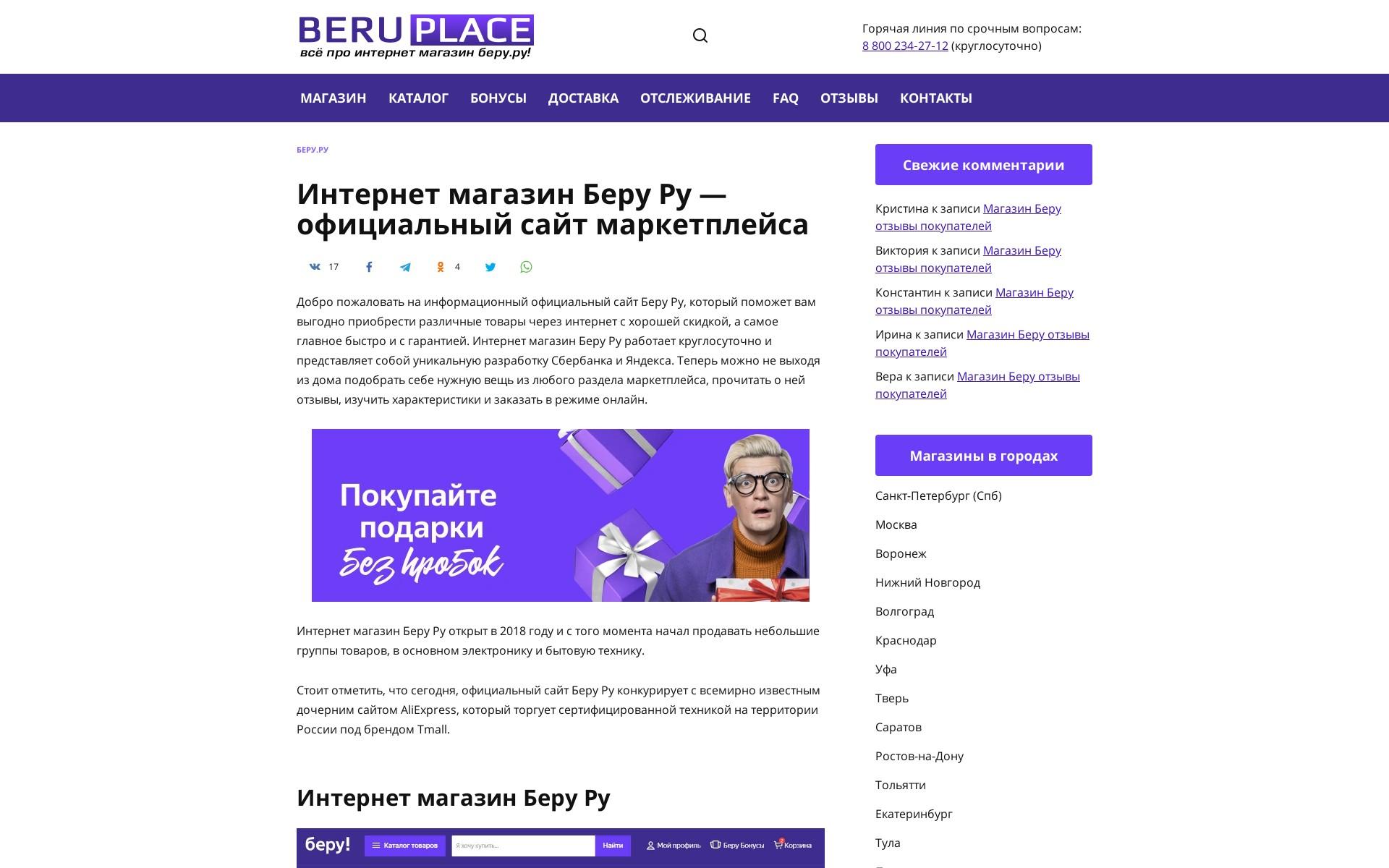 Сайт по маркетплейсу Беру. Быстро растет. 1000 уников в сутки