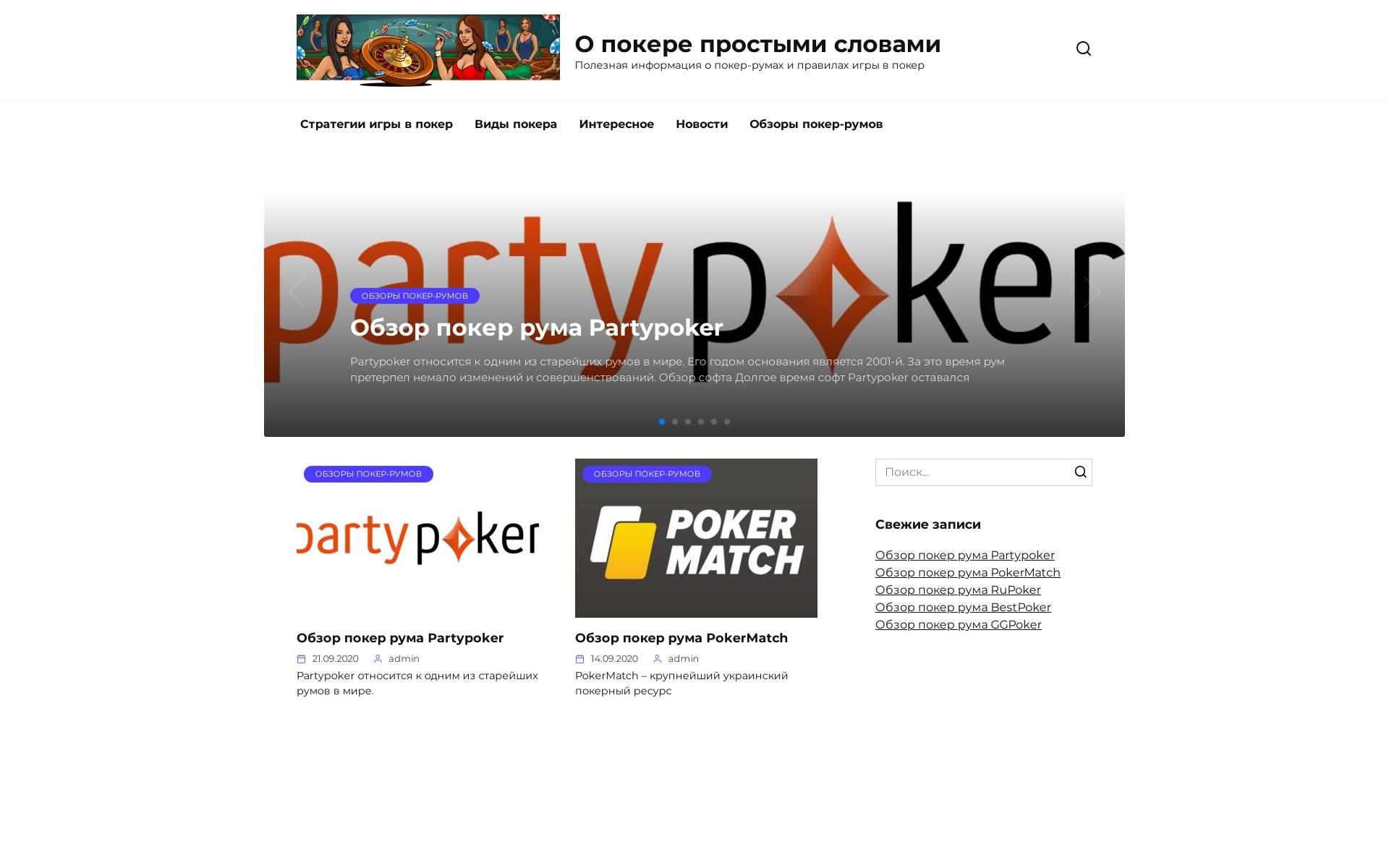 Сайт о покере: виды и стратегии игры в покер, обзоры покер-румов и турниров, полезные статьи, новости и т.д.